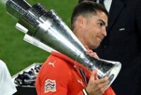 Ada momen so sweet setelah Timnas Portugal menangi UEFA Nations League. Ketika Cristiano Ronaldo jalani sesi wawancara, Bruno Fernandes bawain trofinya dan taruh di depan CR7.